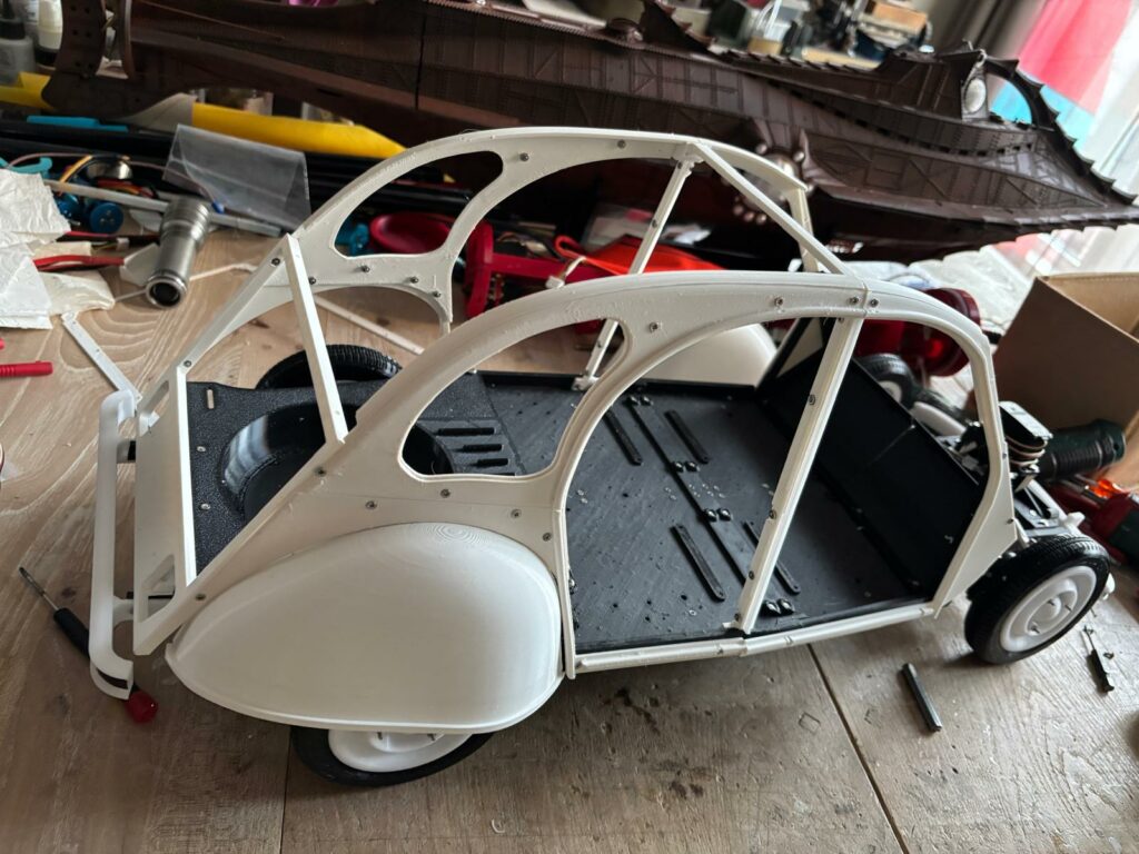 2 ch réalisée en 3d, 237 pièces, 81 pour le châssis, 67 pour la carrosserie et 89 pour les accessoires